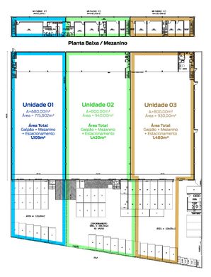 Unidade 3 com área total de 1.480m²